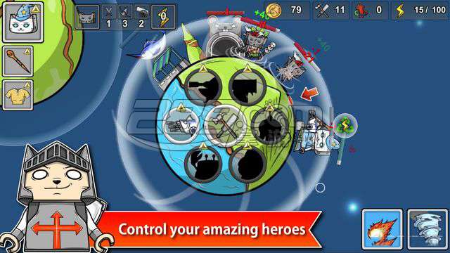 猫和鱼一起去了太空,去回收部落的失物,去探险。利用五种不同的塔楼去消灭阻挡你们前进的敌人。