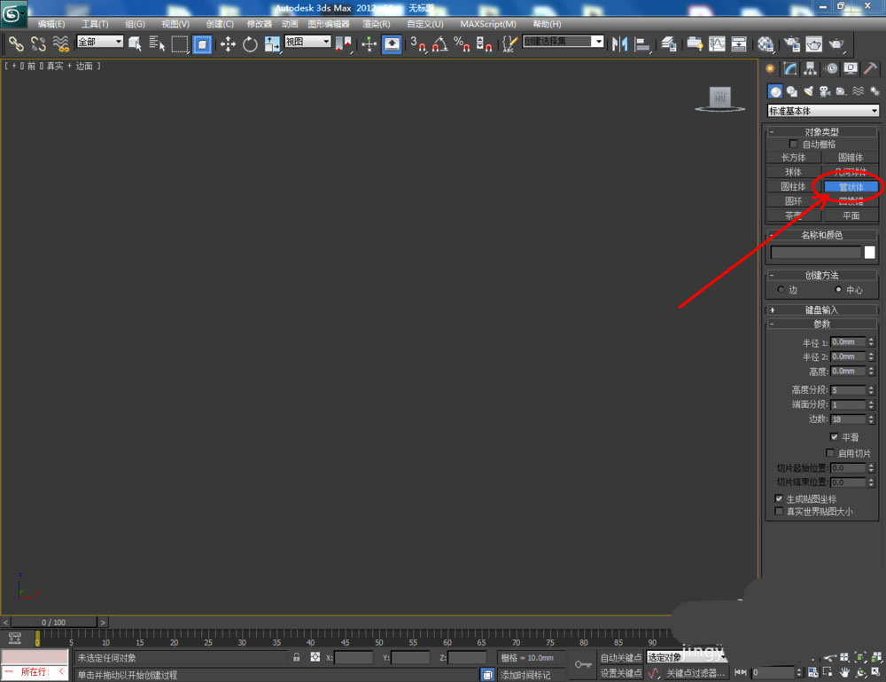 1、打开3Dmax2012软件,点击【创建】-【几何体】-【标准基本体】-【管状体】,在作图区域绘制一个管状体模型并根据需要设置好模型的各个参数;